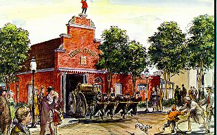 Freedomland visitors watch volunteer firemen rush to put