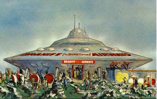 SPACE ROVER - In Freedomland's Satellite City, visitors board the Braniff International Airways space ship for a thrilling trip into orbit to view a panorama of the wonders of the Western Hemisphere. |