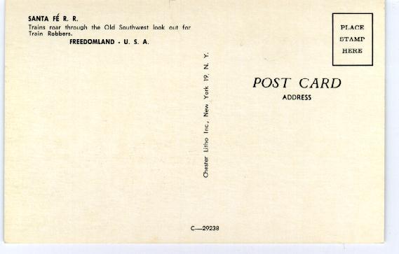 I've recently seen on Ebay a series of Freedomland postcards that are photographs, not the Hallmark-type artwork. Here are some of the ones I've come across. I now own 2 of these, and I've marked those that I have.